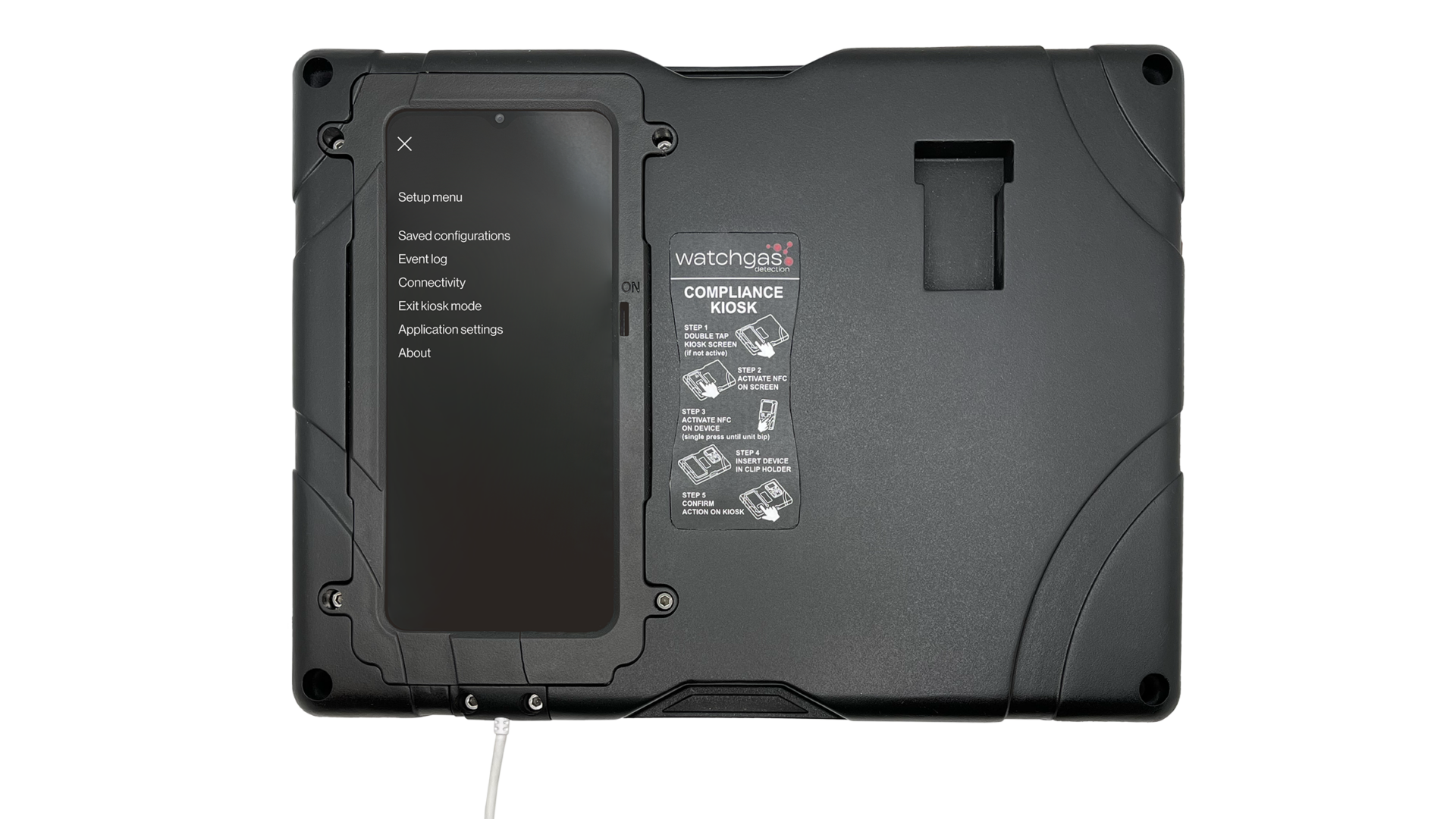 The WatchGas Compliance Kiosk works as a terminal to allow the user to check in the gas detector, providing a full overview of the device status and any unforeseen events. The WatchGas compliance Kiosk automatically sends all data to a designated software site. This provides a cost-effective overview of fleet health, predictive maintenance, events, and alarms. Furthermore, the WatchGas Compliance Kiosk provides the ability to manage the detector settings and user assignments actively.